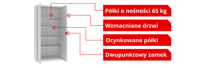 Szafy LMSW wyposa偶one s膮 w drzwi skrzyd艂owe z 2-punktowym zamkiem oraz uchwytem, co gwarantuje bezpiecze艅stwo przechowywanych narz臋dzi. Standardowe ocynkowane p贸艂ki z mo偶liwo艣ci膮 regulacji wysoko艣ci umo偶liwiaj膮 elastyczne dostosowanie wn臋trza do r贸偶nych potrzeb. Szafy te sprawdz膮 si臋 zar贸wno w profesjonalnych warsztatach, jak i w przydomowych gara偶ach, oferuj膮c wysok膮 funkcjonalno艣膰 i bezpiecze艅stwo przechowywania.