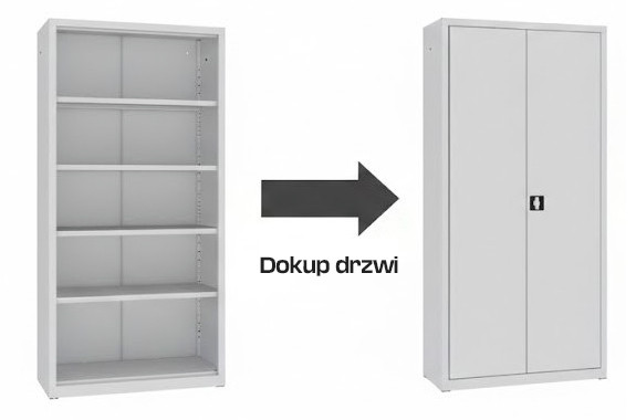 • Łatwa konwersja: W dowolnym momencie użytkowania możesz dokupić same drzwi i samodzielnie zamienić regał w zamykaną szafę biurową.